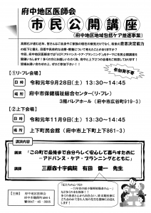 お知らせ 2019年8月23日更新 9/28 と11/9 市民公開講座「アドバンス・ケア・プランニング」 府中地区医師会ではアドバンス・ケア・プランニングをテーマに市民公開講座を2会場で開催します。 ぜひご参加ください。 2025年07月29日更新 第17回藤野昌言先生記念講演会 令和7年10月6日(月)19:00~20:30 2025年07月29日更新 救急の日 府中地区救急法等講習会 令和7年9月4日(木)13:30~16:00 2025年04月24日更新 市民のための救急医療講演会 令和7年6月6日(金)19:00~20:40 2024年07月31日更新 第16回藤野昌言先生記念講演会 令和6年10月11日(金)19:00~20:30 2024年07月10日更新 救急の日 府中地区救急法等講習会 令和6年9月4日(水)13:30~16:00 府中地区介護支援専門員連絡協議会のご案内 府中地区医師会准看護学院 かかりつけ医について 医師会関連 日本医師会 広島県医師会 福山市医師会 松永・沼隈地区医師会 深安地区医師会
