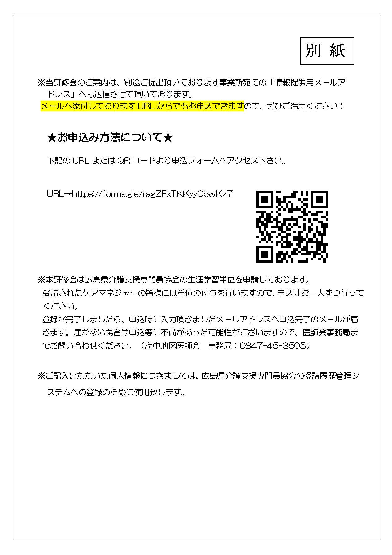 お知らせ 2024年10月16日更新 ★10/25研修会のご案内 10月25日(金)14:00~リフレにて 申込はこちら⇒お申込フォーム 2025年12月11日更新 広報誌「芦田川」第36号が発行されました!! 2024年10月16日更新 広報誌「芦田川」第34号が発行されました!! 2024年10月16日更新 ★10/25研修会のご案内 2016年06月14日更新 「府中地区ブロック」として届出申請しました 2014年11月12日更新 府中地区介護支援専門員連絡協議会のご案内を公開しました。 府中地区介護支援専門員連絡協議会のご案内 府中地区医師会准看護学院 かかりつけ医について 医師会関連 日本医師会 広島県医師会 福山市医師会 松永・沼隈地区医師会 深安地区医師会